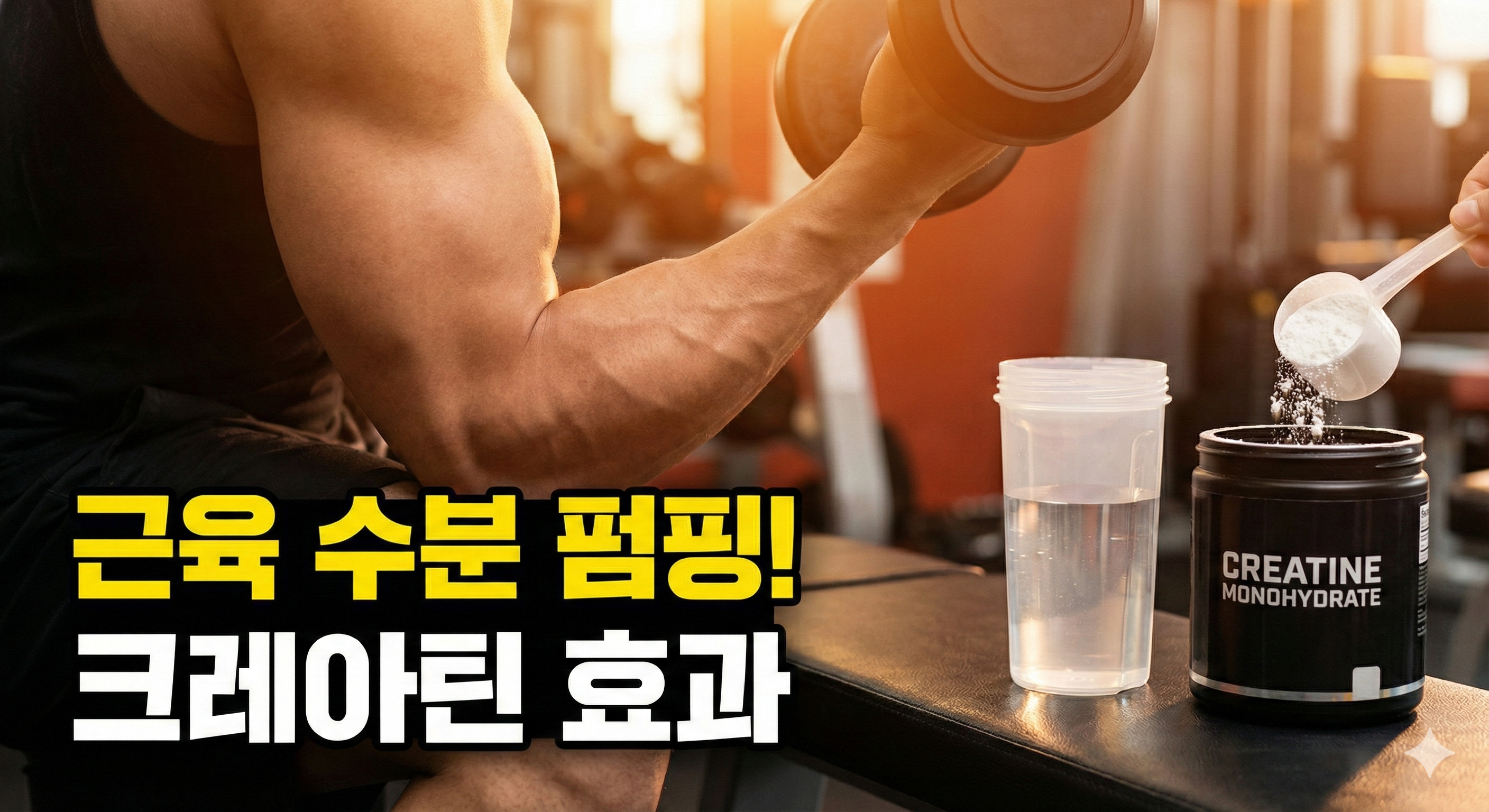 - 근육 볼륨감 증가: 크레아틴은 수분을 끌어당기는 성질이 있습니다. 근육 세포 내로 수분을 끌고 들어가 근육이 더 커 보이고 빵빵해 보이는 효과를 줍니다.