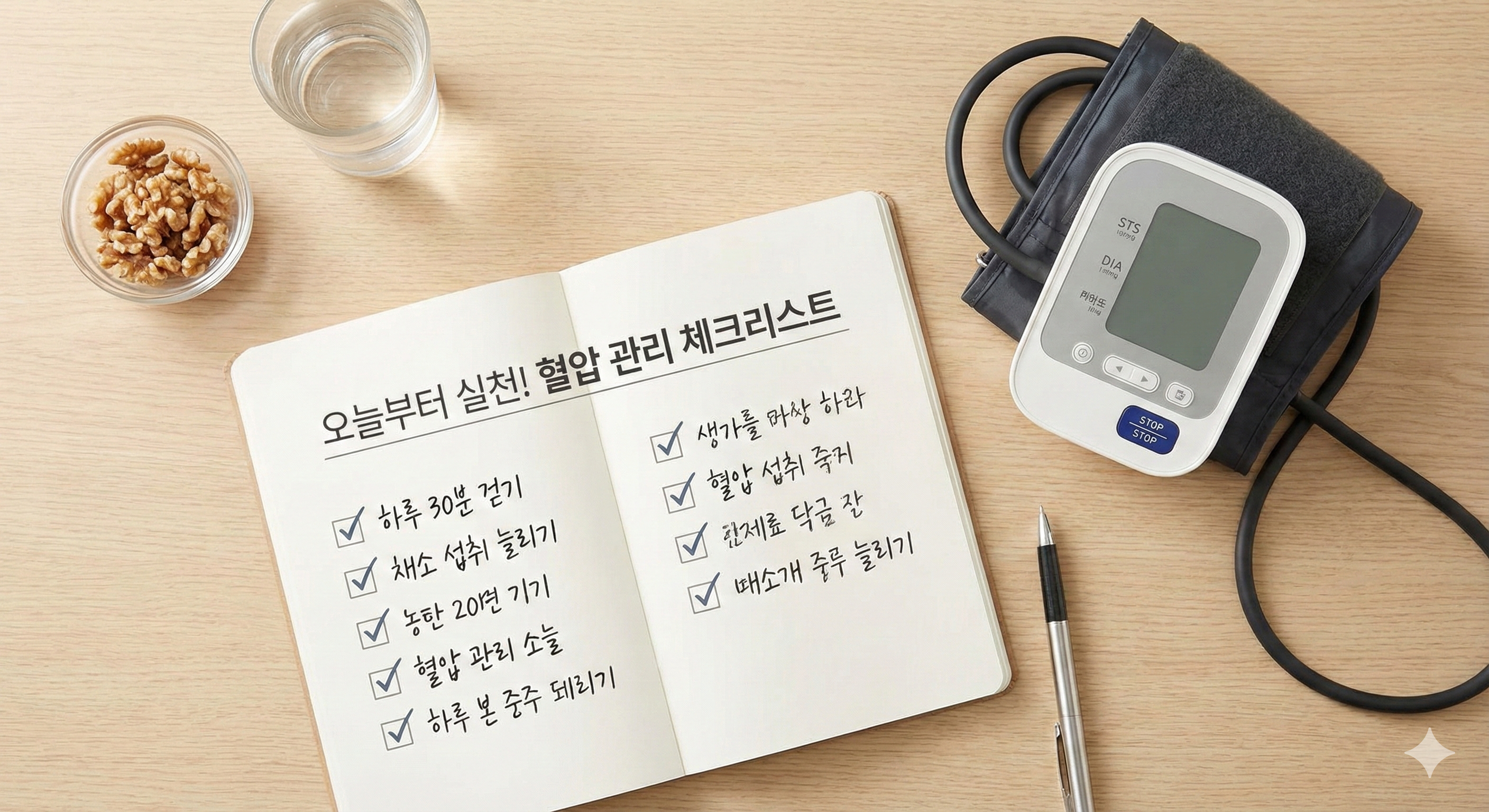 오늘은 여러분이 하루아침에 바꿀 순 없어도, 매일 하나씩 체크하며 개선해 나갈 수 있는 실전형 '혈압 관리 생활 습관 체크리스트'를 준비했습니다. 이 글을 읽고 3개 이상 'X'가 나온다면, 오늘부터 당장 SungHub와 함께 변화를 시작해야 합니다.
