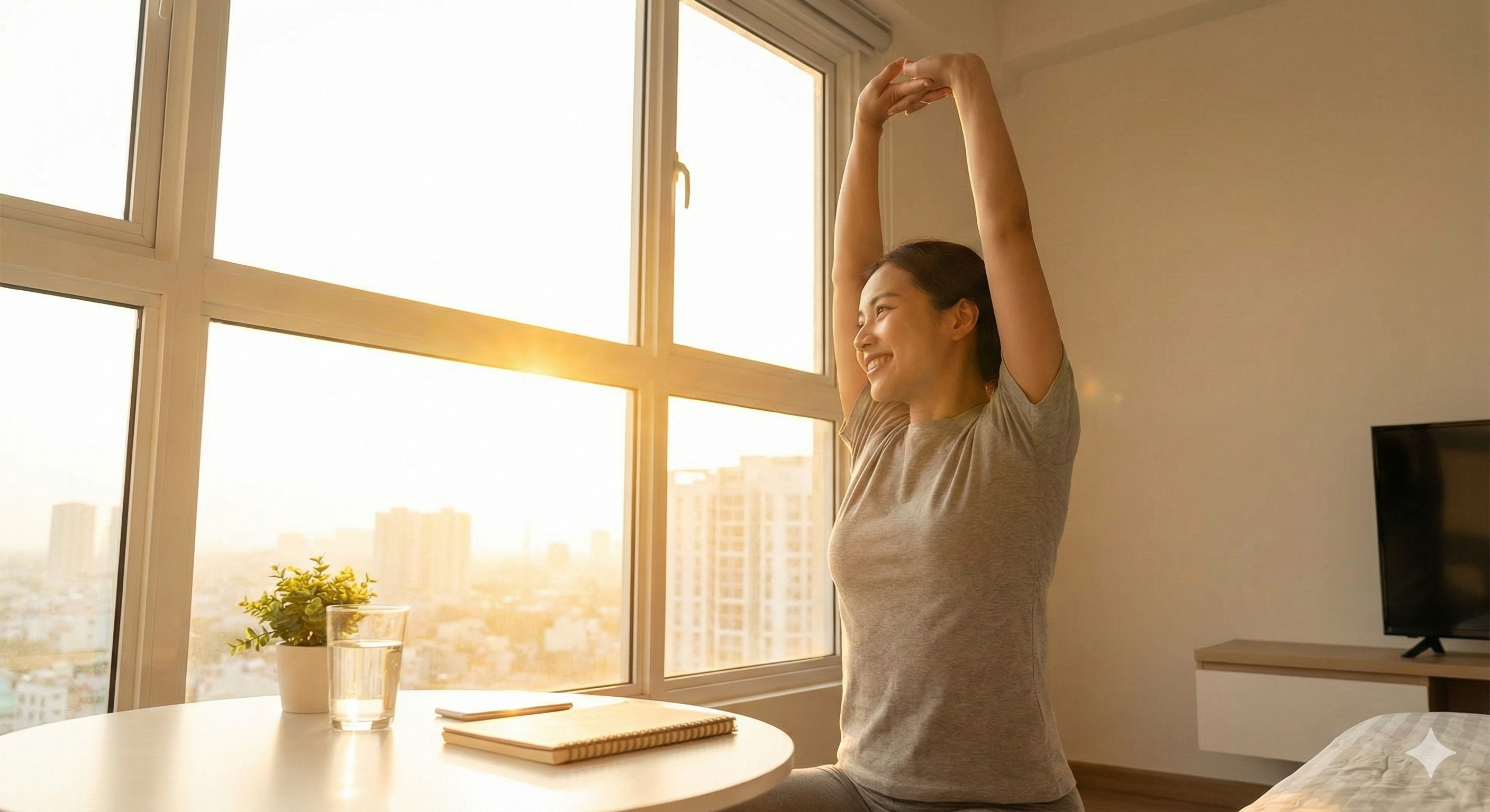 - 닥터의 처방: 일어나자마자 미지근한 물 한 잔(약 300ml)을 마셔 위장관을 깨우고 혈액 순환을 돕습니다. 그리고 가벼운 스트레칭으로 체온을 올려주면 교감신경이 활성화되어 잠 기운이 빠르게 달아납니다.